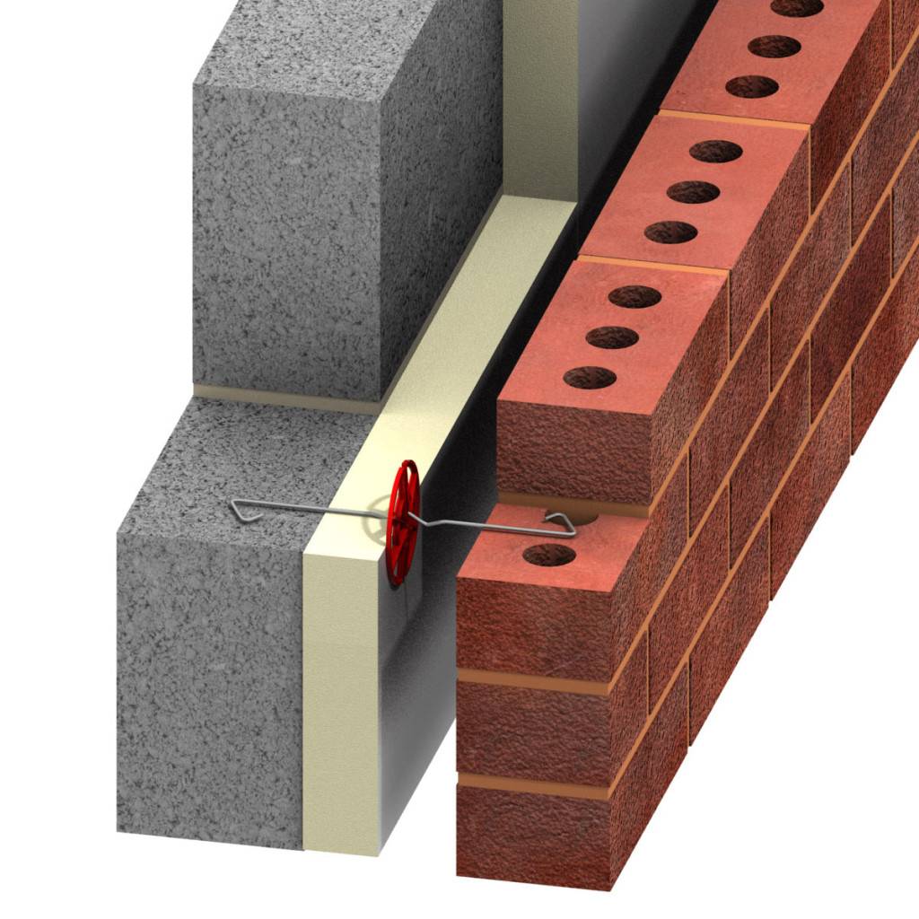 Анкеры, используемые при создании клинкерного фасада, могут отличаться материалом и конструкцией. Они обеспечивают связь слоев трехслойной ограждающей конструкции и устойчивость наружного слоя. Существуют анкеры, предназначенные для заведения в кладку на широком шве и отдельные анкеры для тонкого шва.