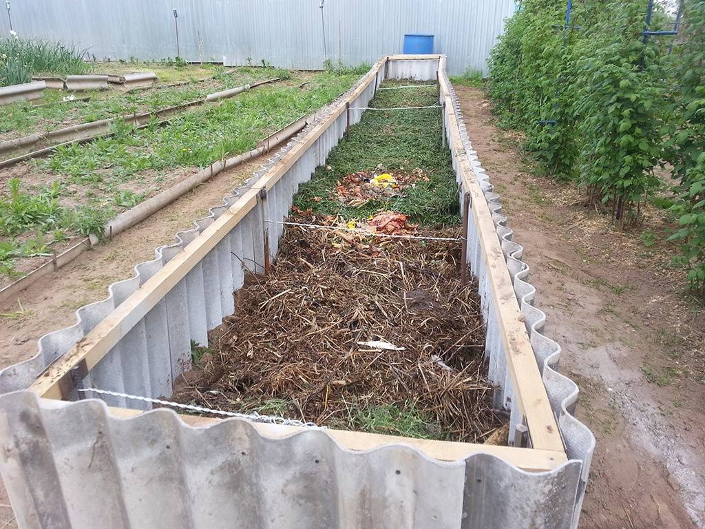 Шифер – идеальный материал для изготовления высоких грядок. Для подобного рода конструкции необходимы 10-12 метров шифера, высотой до 0.8 метра и металлические колья для опоры. Процесс создания клумбы выглядит следующим образом: