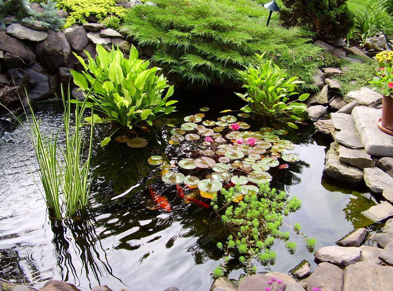 Небольшой садовый пруд с водяными клумбами