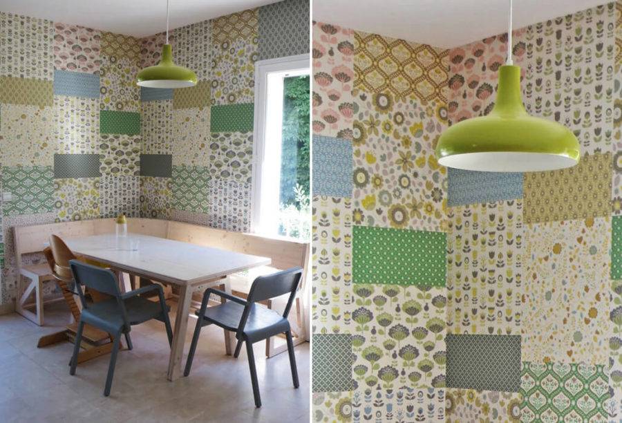 Комбинированные обои в стиле пэчворк.