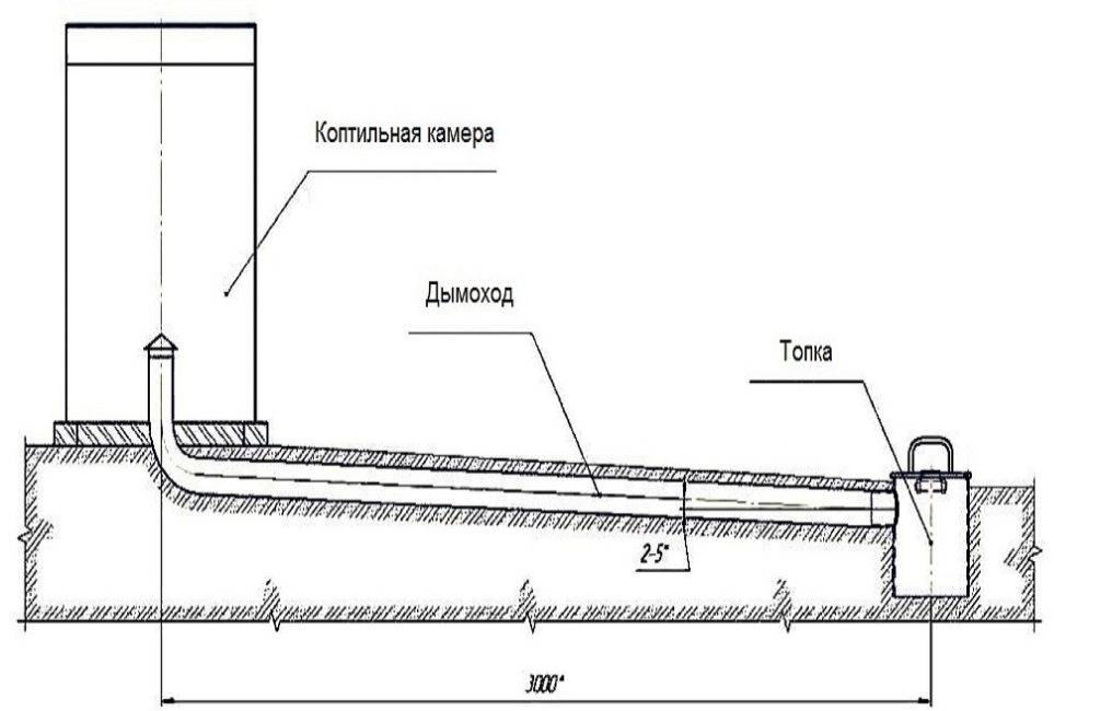 - дымоход, выполняющий функцию доставки дыма и нагретого воздуха к месту копчения