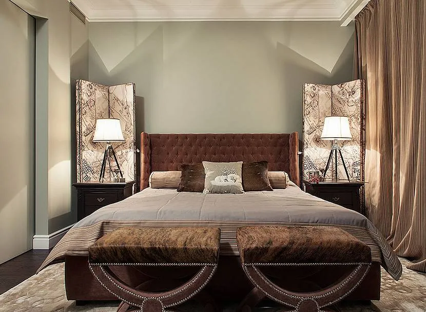 Спальня бежевая с темной гаммойИсточник арт-интерьер.москва