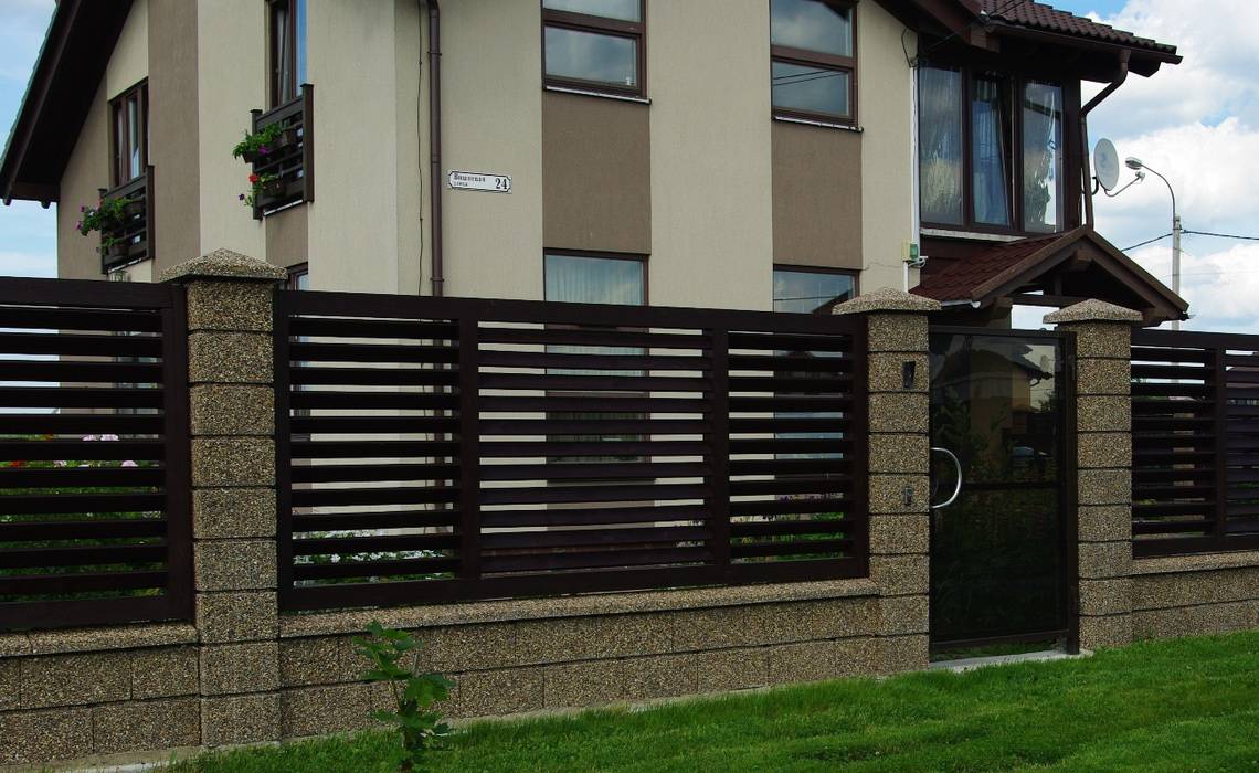 Яркие примеры заборных конструкций в этом стиле: