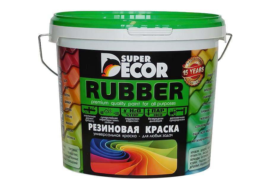 Резиновая краска устойчива к перепаду температур, воздействию влаги и ультрафиолета. Расход материала небольшой. Он сохраняет свои технические свойства при температуре от -50 до +60 °С. Срок эксплуатации покрытия достигает 10 лет. Даже при нанесении состав не издает неприятного запаха. Недостатком является низкий уровень паропроницаемости.