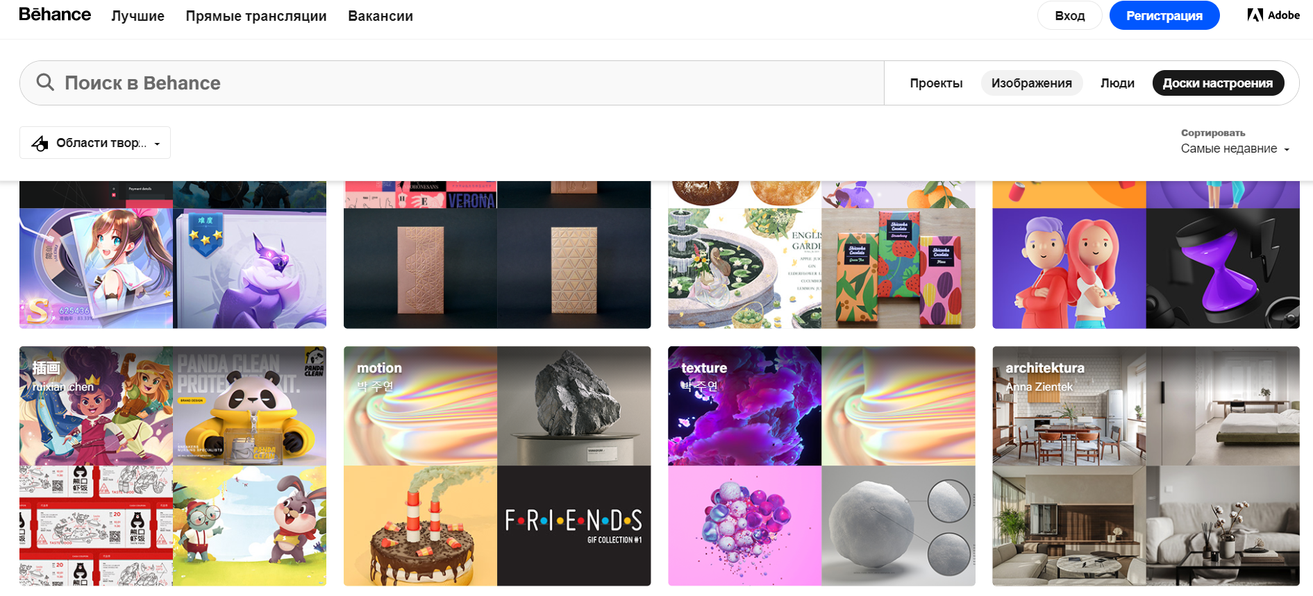 Также в Behance есть вкладка «Лучшее», где собираются лучшие проекты, отобранные кураторами площадки.