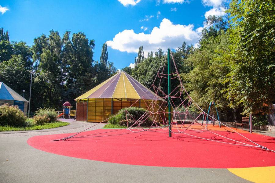По площади, которую занимают детские площадки в соотношении с другой инфраструктурой, с Делегатским парком соперничать сложно. На 4 гектарах здесь сосредоточились 5 игровых комплексов – «Песочная фабрика» для самых маленьких и 4 площадки по названиям планет: «Луна», «Нептун», «Марс» и «Меркурий». Среди развлечений – «лазалки», батуты, скалодром, большие горки и живой лабиринт, а одним из самых заманчивых аттракционов парка для посетителей стали две тарзанки – длинная и короткая (на ней разгон происходит еще быстрее). Не дадут заскучать и взрослым – если ваш вес меньше 80 килограммов, вы сможете присоединиться к своему чаду и так же попробовать все увеселения парка.