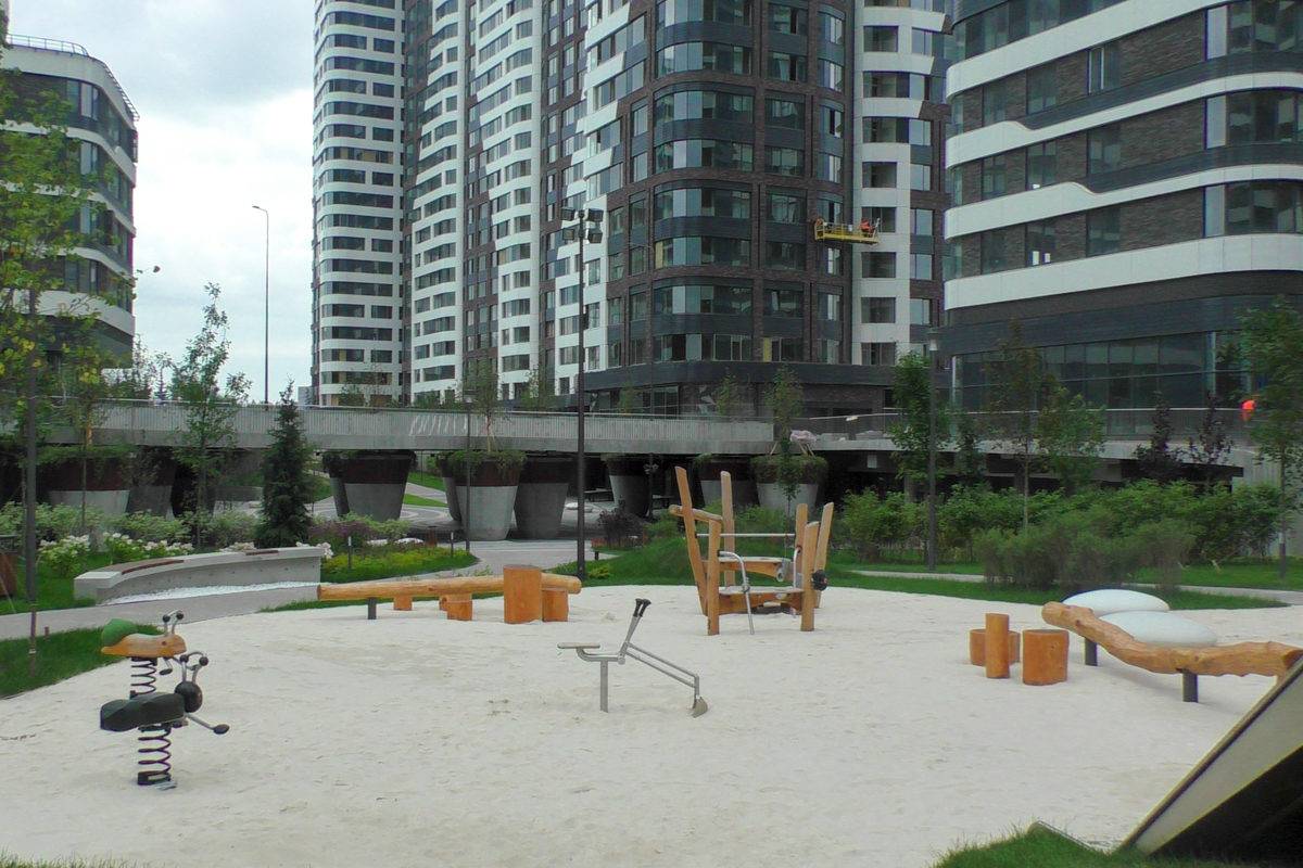 В начале XX века неподалеку от Ходынского поля находился аэродром. Неудивительно, что лейтмотивом для детской площадки в новом парке здесь стала как раз тема полета. Центральной конструкцией пространства стал сложносочиненный игровой комплекс в виде самолета – на его борту можно и полазить, и покататься с горки. На территории площадки также разместились разнообразные тоннели, лестницы, горки и лабиринты, замаскированные под небо, радугу и земли, над которыми и «пролетает» фигура самолета. А для настоящего ощущения взлета малыши могут попрыгать на мини-батутах в «облачных» участках площадки.