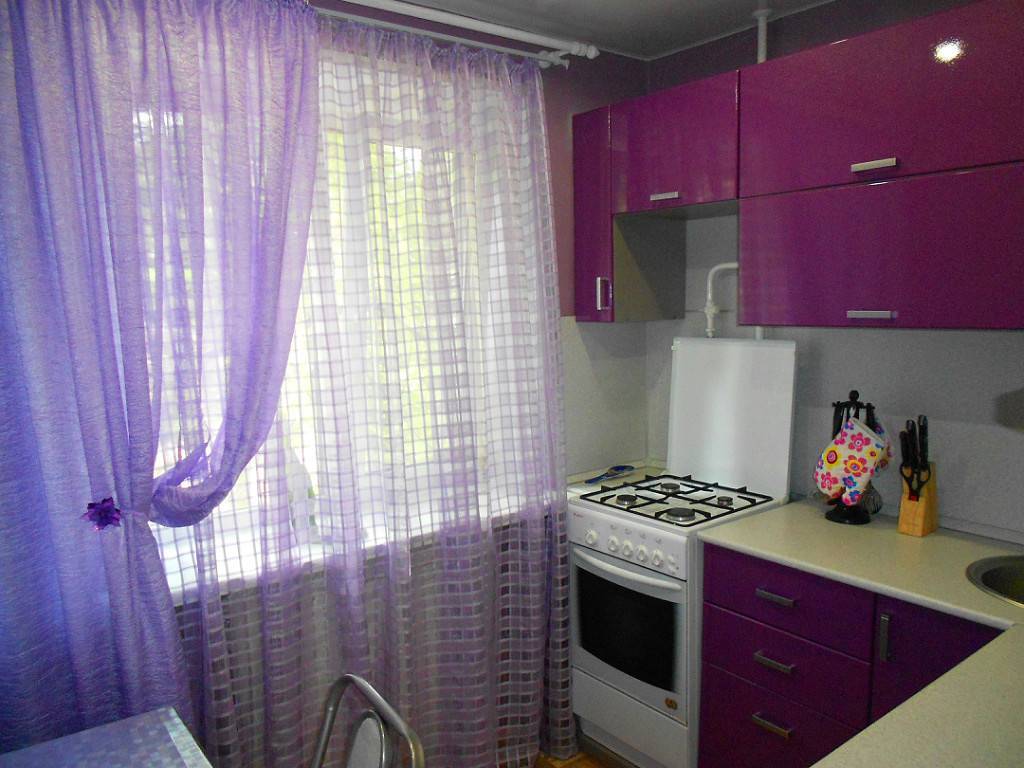 Не стоит покупать портьеру, она более уместна в спальной комнате или гостиной. Не подойдут также темные оттенки, такие, как бордо, черный, насыщенный фиолетовый, они сужают пространство. Гораздо лучше впишутся занавески в нежных, пастельных тонах. Конечно, насыщенные фиолетовые или бордовые шторы в интерьере смотрятся богато, но в кухне они будут выглядеть тяжеловато.