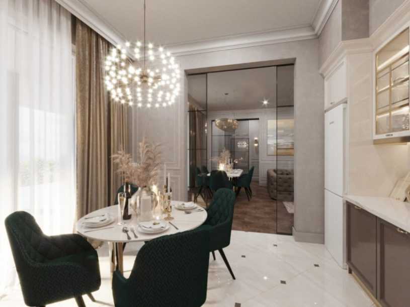 - Возможность организовать обеденную зону рядом с кухней. Если кухня и гостиная объединены, удобнее накрывать большой стол, не отходя далеко от кухни.