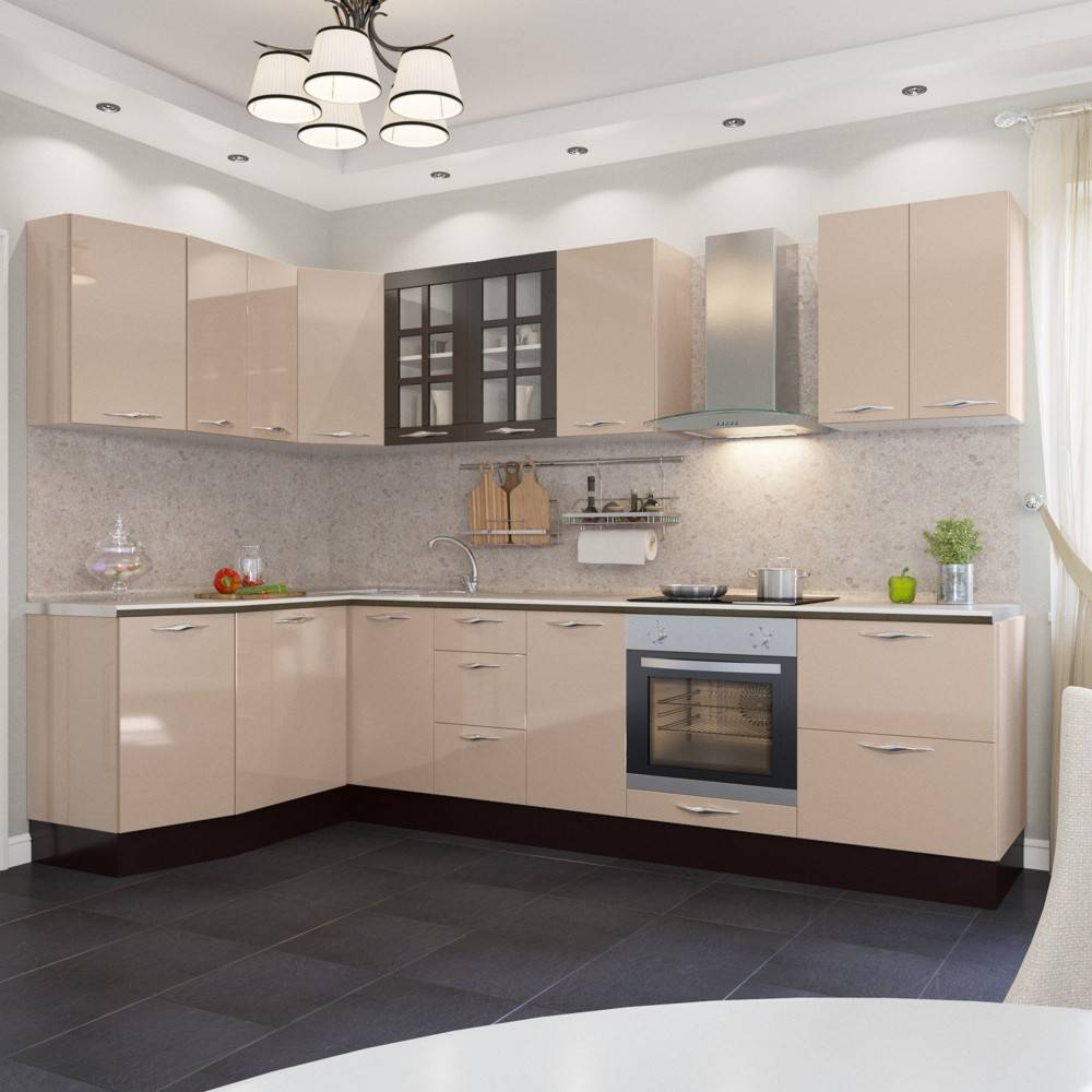 Кухня «Капучино» от “Леруа Мерлен”, по отзывам, предпочитают те, кто любит проводить много времени на кухне, поэтому им крайне важно создать атмосферу тепла и уюта. Этого эффекта помогает достичь пастельный бежево-кофейный оттенок мебели, который отлично сочетается с шоколадным цветом корпуса.