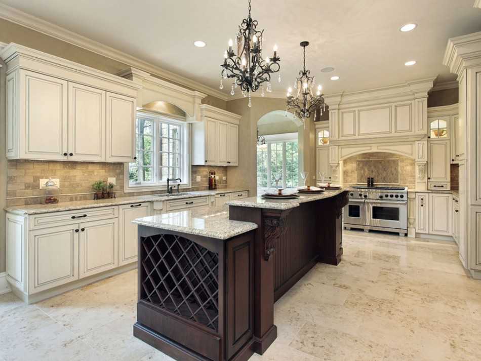 Очень часто на кухням в стиле «классика» используется натуральный мрамор в качестве напольного покрытия