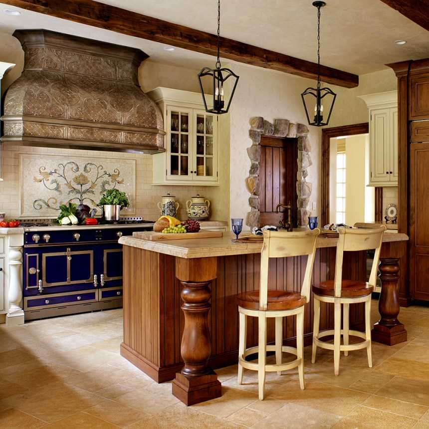 Самыми популярными материалами для отделки кантри кухонь являются дерево и камень