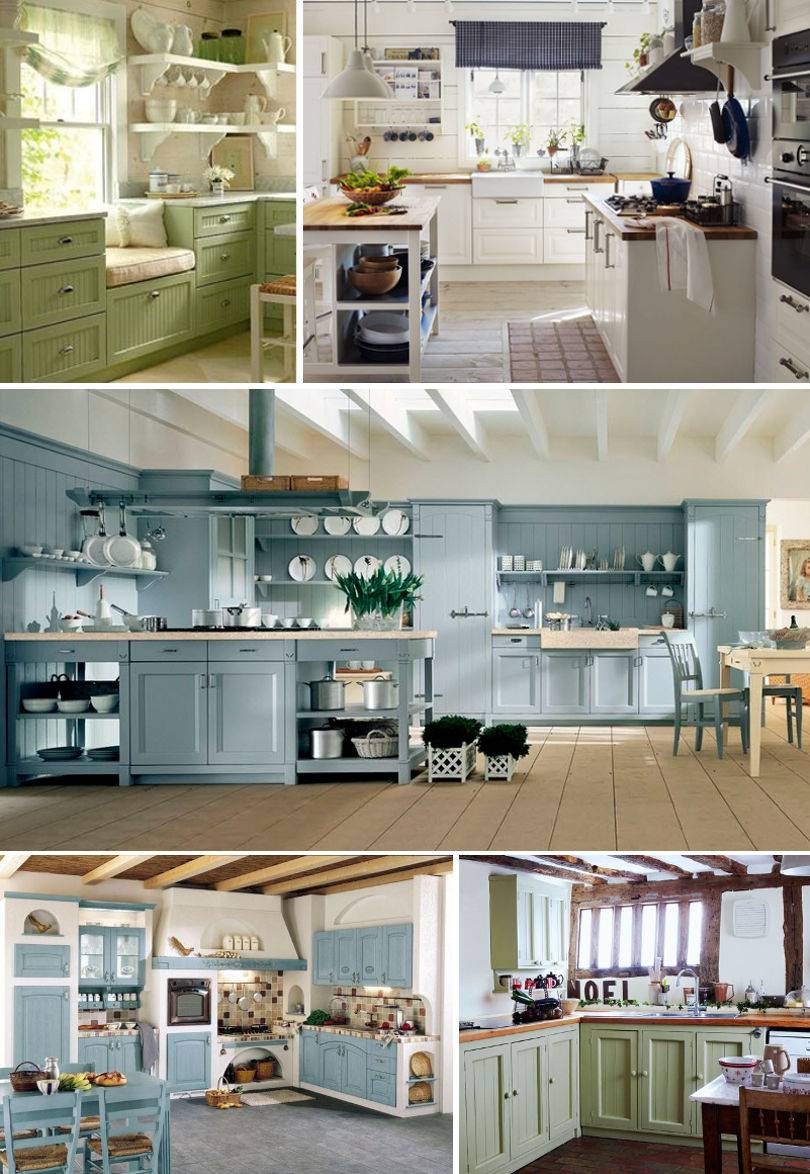 цветовые решения стиля всегда отличаются мягкостью, ведь кантри не предполагает ярких или кричащих оттенков, популярные цвета для кухни кантри это использования и сочетания: белого, бежевого, сливочного, светло-желтого и светло-зеленого, оливкового, нежно-голубого, серого, терракотового и т. д