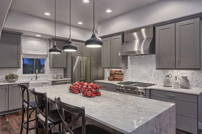 Кухня с металлическими акцентамиИсточник dizajn-gostinoj.com