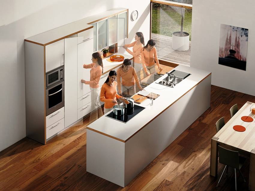 При наличии модульной системы у конкретного производителя со временем можно докупать шкафы и расширять рабочую зону кухни.