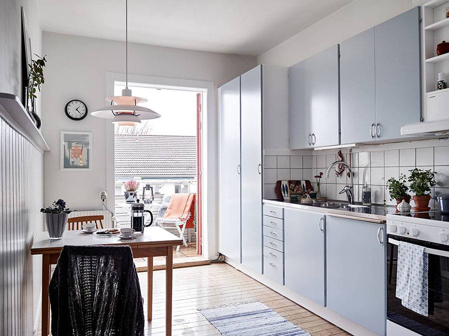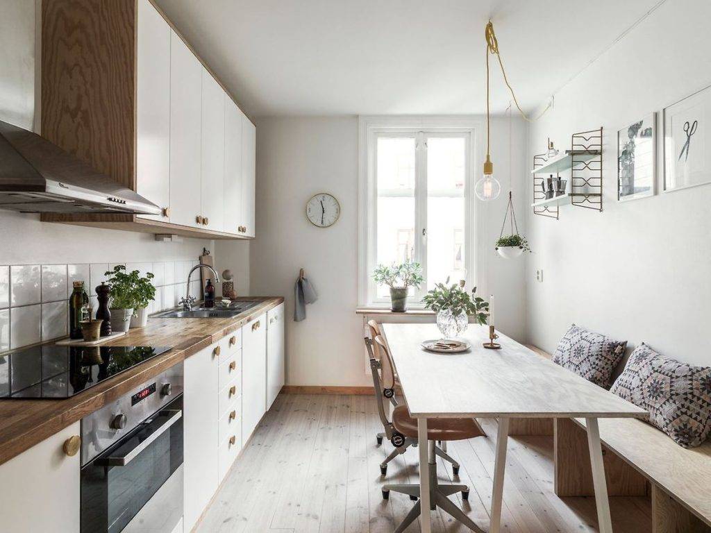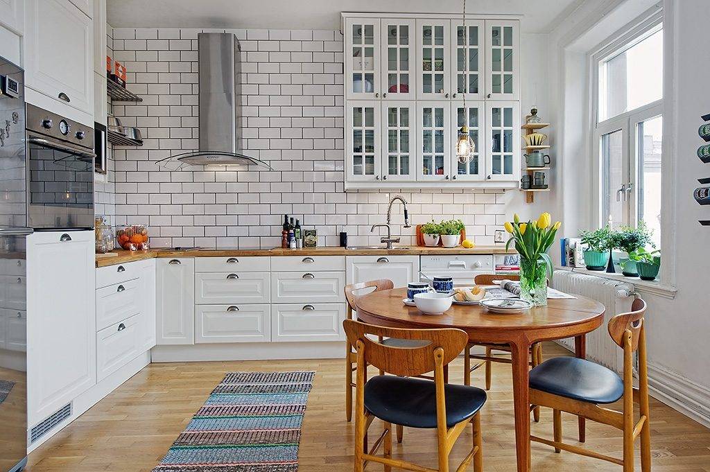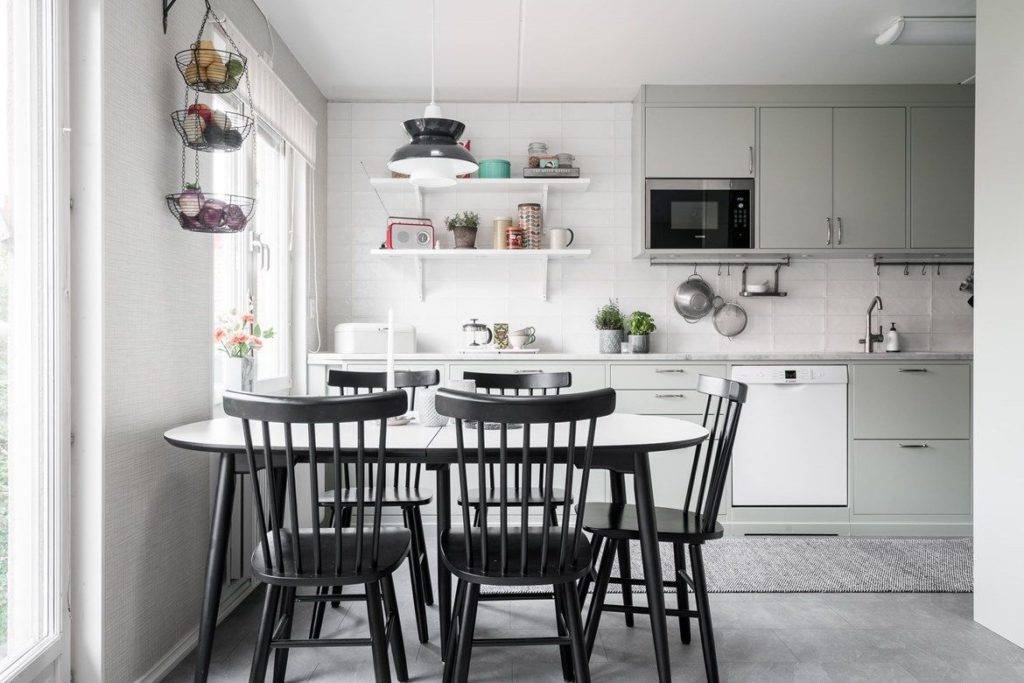 Площадь кухни позволяет поставить в ней стол, табуретки или стулья? Следует отвести для этого пространство с учетом возможности комфортного отодвигания стульев.
