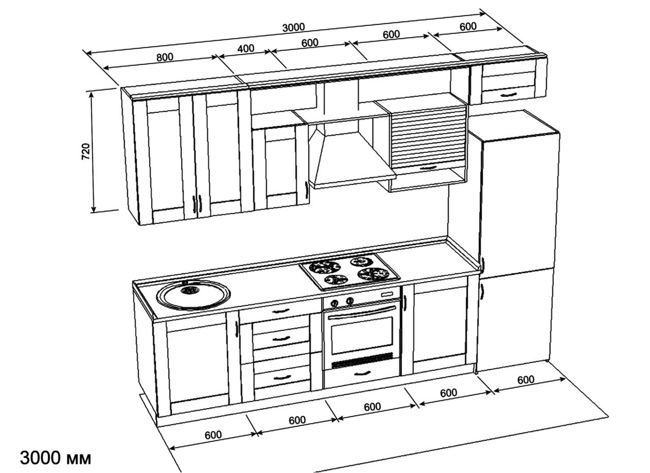 Приведённые выше размеры могут использоваться для чертежей и схем кухни, собранной своими руками. Это не жёсткие требования, все параметры можно менять под индивидуальные особенности помещения, потребности домочадцев и пр. Единственная деталь, чей размер действительно важен, это фасад — изготовление на заказ нестандартных моделей обходится дороже.