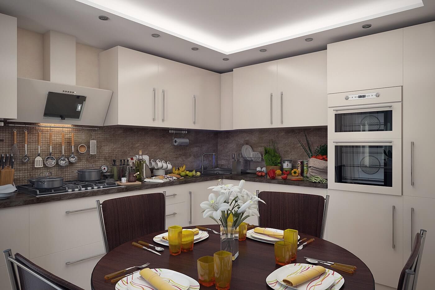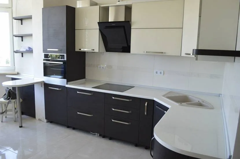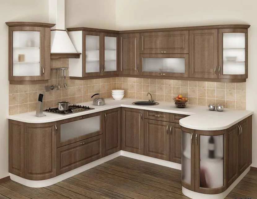- угловую кухню можно обставить предметами мебели с разнообразными конфигурациями, что позволяет каждому человеку выбрать для себя актуальный по комфортабельности вариант;