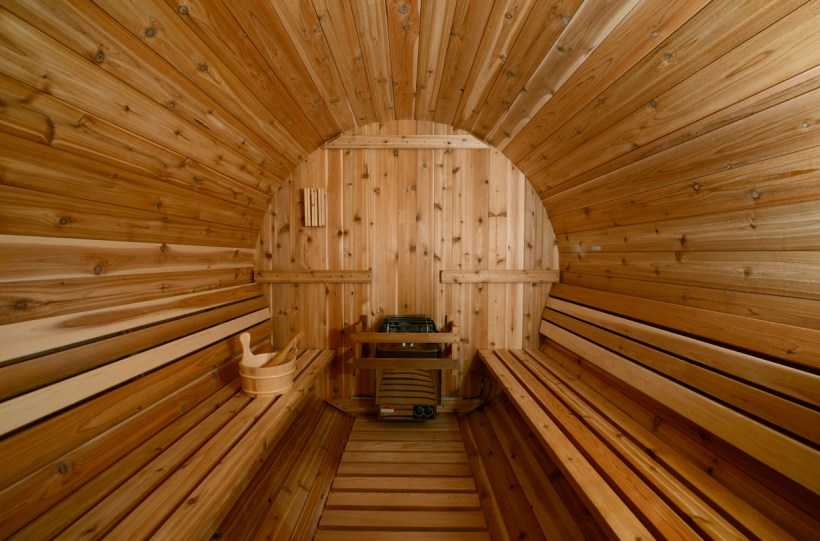 - Отличное удержание горячего пара над полками. Купольная форма не дает растекаться горячему влажному пару по угловым зонам потолка. Поэтому, в отличие от вытянутых и прямоугольных парилок, нет конденсата в углах, баня сфера получается очень жаркой и сухой;