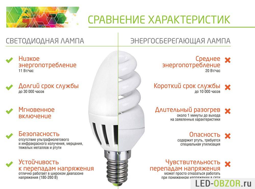 Чем отличаются энергосберегающие лампочки от светодиодных