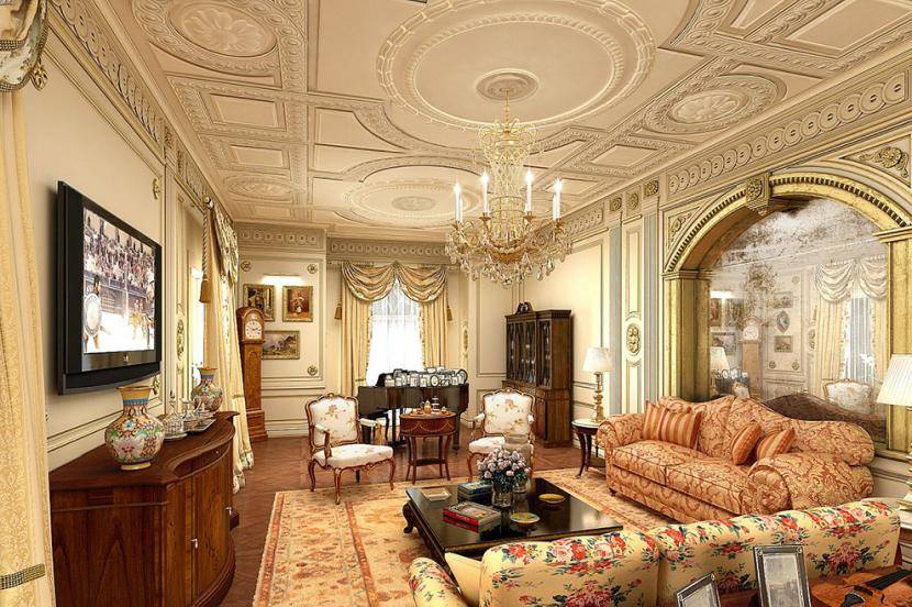 И еще раз, лепнина не всего равняется роскоши, здесь нужно обладать вкусом и чувством меры. Если есть подобные черты или огромное желание разобраться, то можно превратить гостиную в место для приема самых важных гостей.