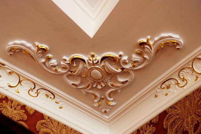 Более дорогой способ оформления лепнины — сусальное золочение. Для этого используются тонкие листы чистого золота. Технология требует специальных навыков.