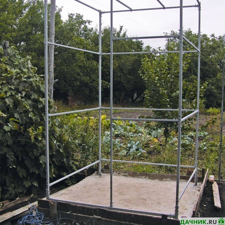 Каркас собирается из железных труб, которые вкапываются в грунт на глубину примерно 1 м.