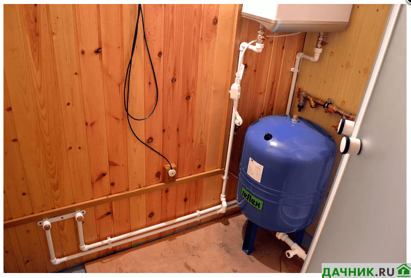 На дачном участке подачу воды в бак с подогревом делают от централизованного водопровода или обустроенного колодца. Для этого от колодезного насоса или от гидроаккумулятора прокладывают водопроводную трубу.