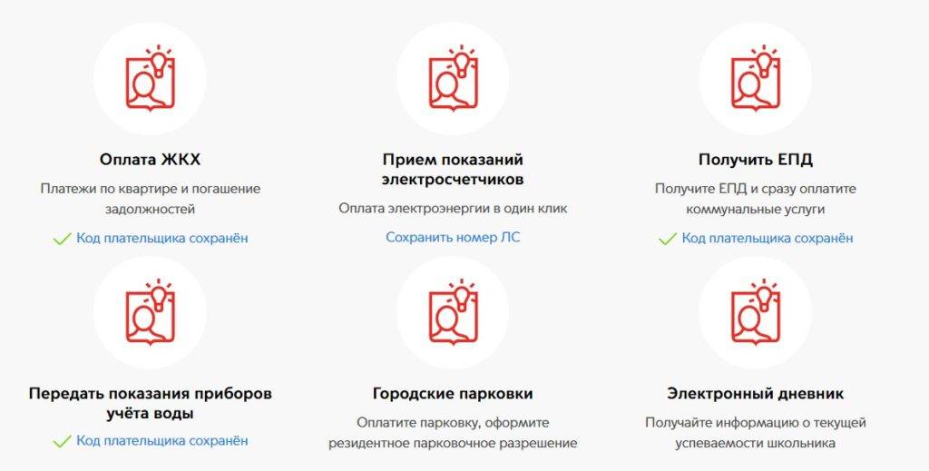 Через главную страницу сайта можно перейти к личному кабинету mos.ru в разделы, связанные с передачей показаний и оплатой жилищно-коммунальных услуг. Переход осуществляется с помощью следующих кнопок: