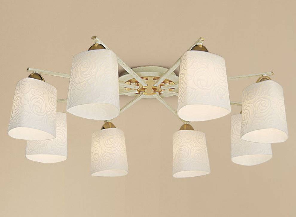 С размером связано и количество рожков. В просторный зал понадобится прибор на 5 или 7 плафонов, а в частном доме со вторым светом — ещё больше. В маленькую гостиную с низким потолком, какие встречаются, например, в хрущёвках, достаточно повесить светильник с 1 или 3 плафонами.