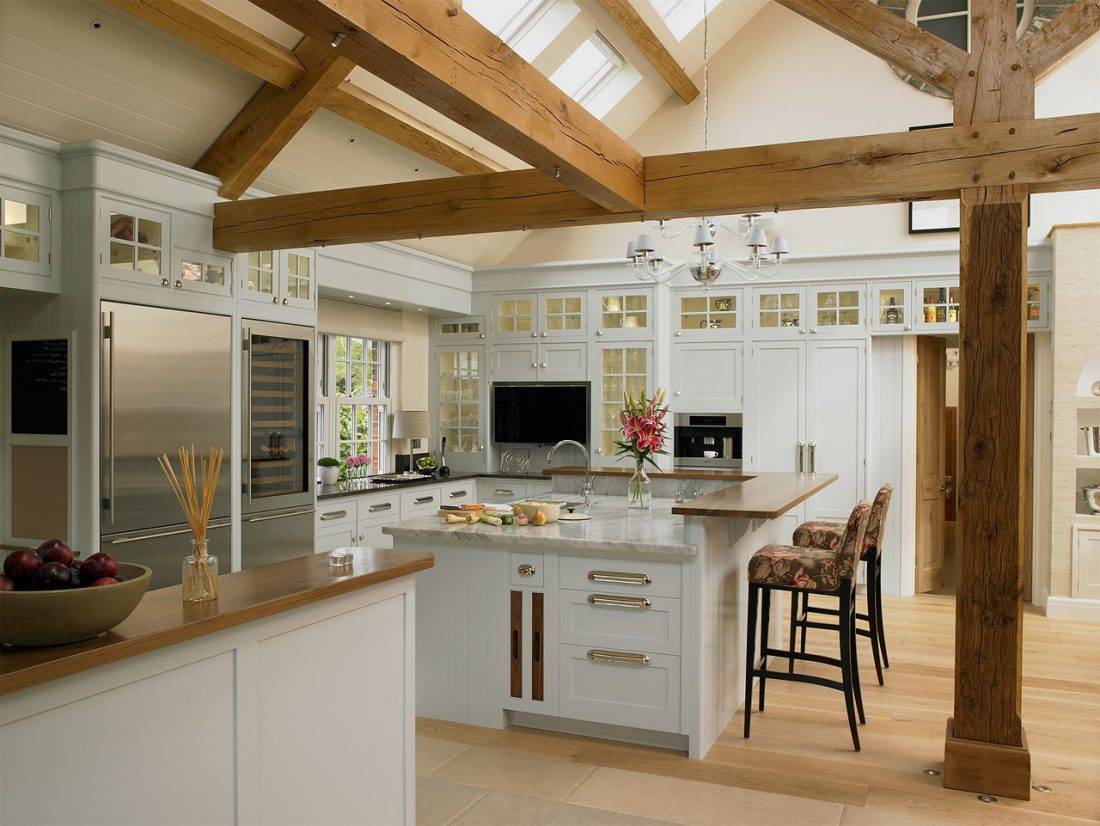 - Для потолка также выберите краску или штукатурку. Натяжные потолки здесь не подойдут, а вот если вы установите у потолка навесные деревянные балки, то попадете точно в цель