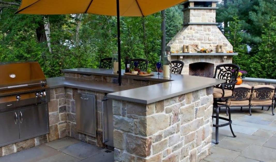 В сочетании с основной и декоративной подсветкой такие материалы будут смотреться великолепно. Такая зона для барбекю не только станет комфортным местом для отдыха всей семьи за городом, но также увеличит стоимость всей загородной недвижимости.