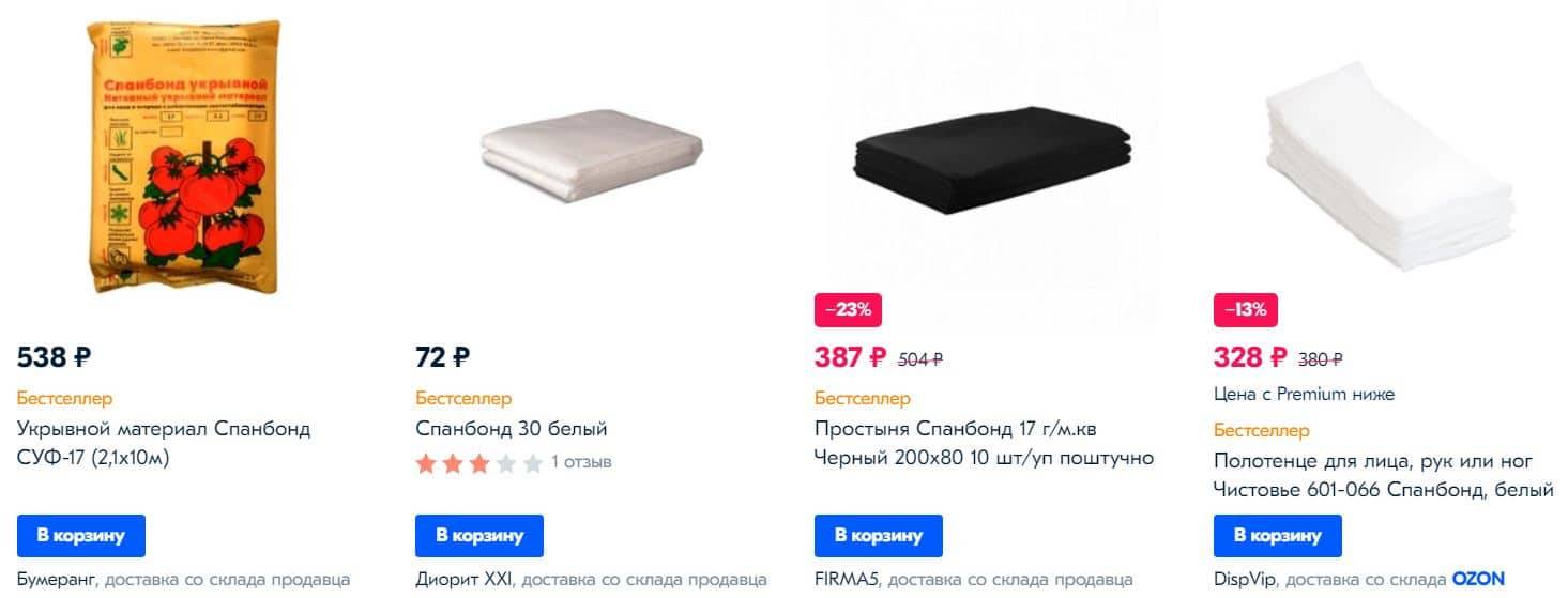 - другие нетканые материалы, и прежде всего, спанбонд.