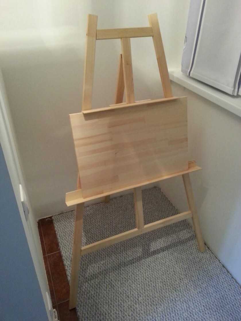 Конструкции из дерева являются более надёжными и долговечными. Но для создания деревянного мольберта требуется больше материальных затрат и минимальные навыки по работе с этим материалом.