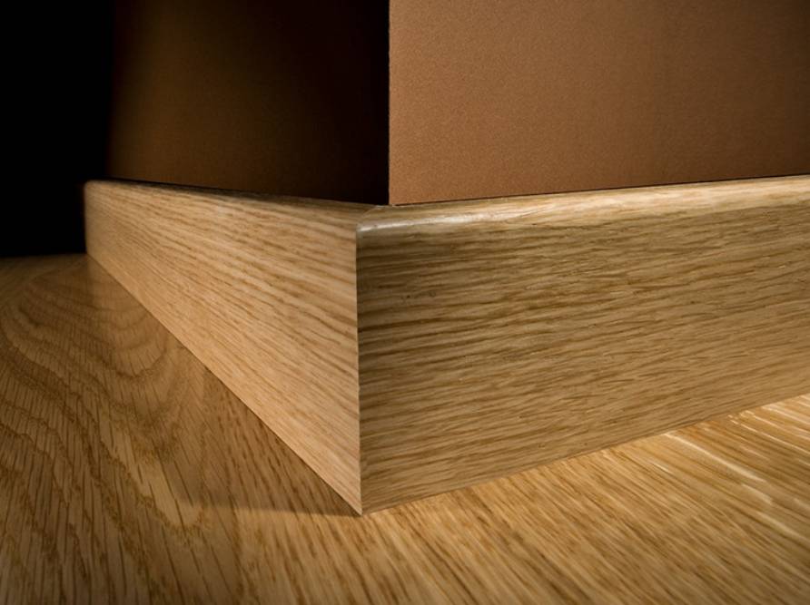 Деревянные планки используются в качестве дополнения к паркетным и дощатым полам, реже для ламината. Выбор типа крепления такого обрамления будет зависеть от того, шпонированная это древесина или массив.