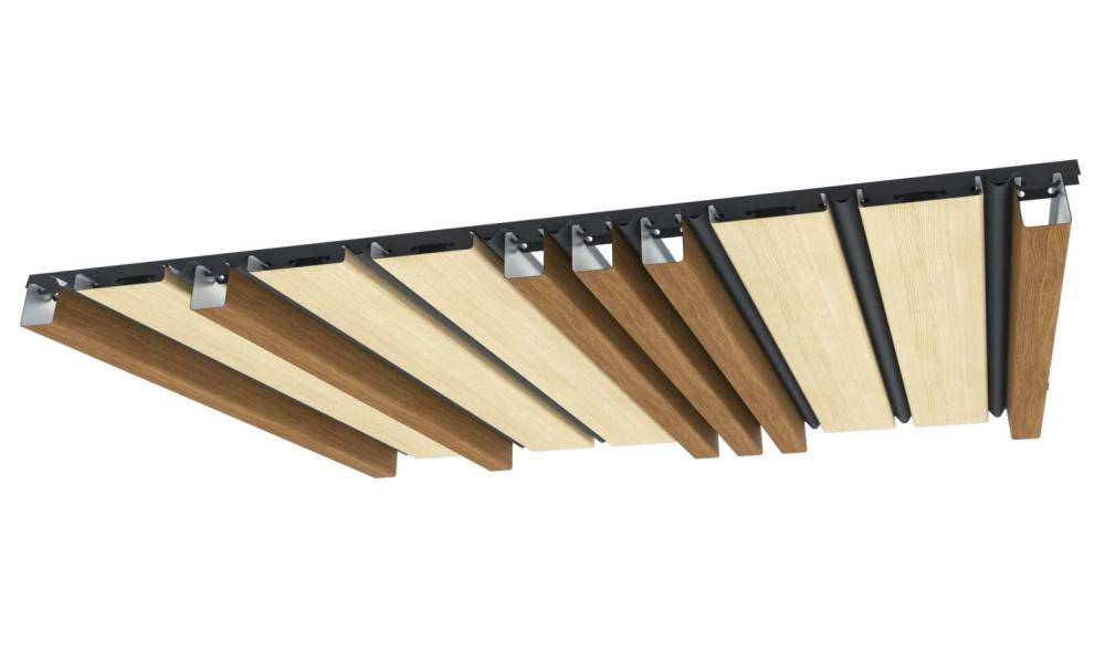 - Открытые рейки. Предназначены для зданий с высотой потолочной конструкции минимум 5 м. Устанавливаются с зазором 0,1-1 см. Пробелы маскируются дополнительными полосками или никак не декорируются.