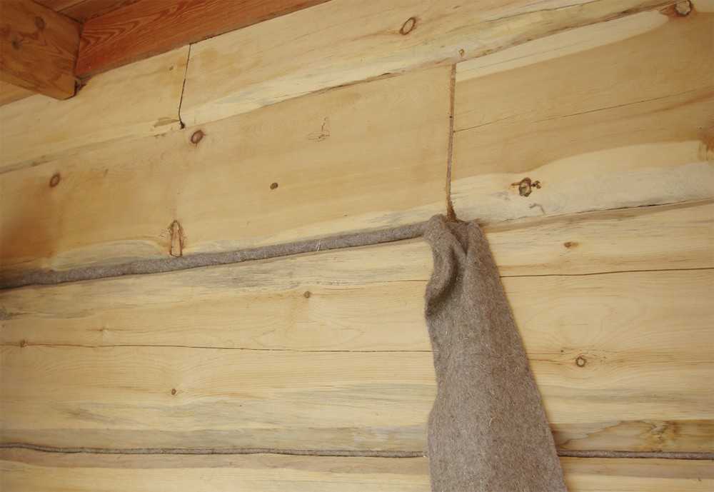 - войлок – представляет собой не слишком подходящий материал для конопатки, так как по мере усушки сруба может набирать значительное количество влаги и постепенно портиться. Кроме того, в войлоке может завестись моль, в краткие сроки поедающая данный утеплитель, во избежание данного явления следует до укладки пропитать его антисептиком. Если данный утеплитель придет в негодность, потребуется затратить значительное количество труда и времени, чтобы вычистить зазоры и полости сруба, а затем проконопатить сруб снова;