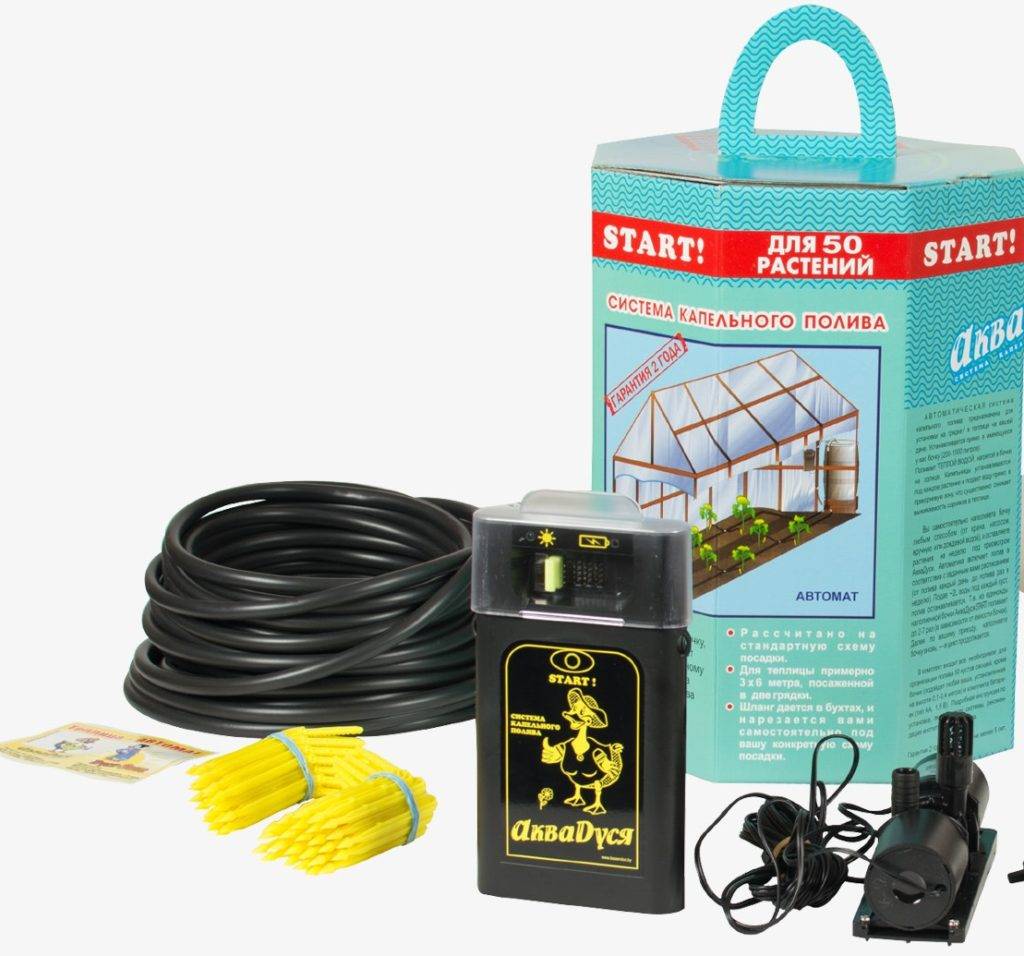 В комплектацию входит все необходимое для установки: капельницы, фильтр, таймер полива. Орошение с помощью такой системы не загрязняет почву, не сушит ее и не оставляет луж.