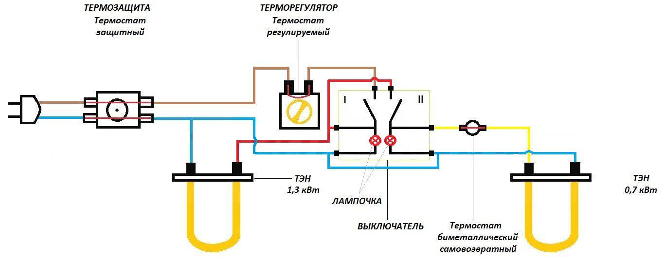 - Термостат – еще один защитный элемент, исключающий вероятность перегрева.