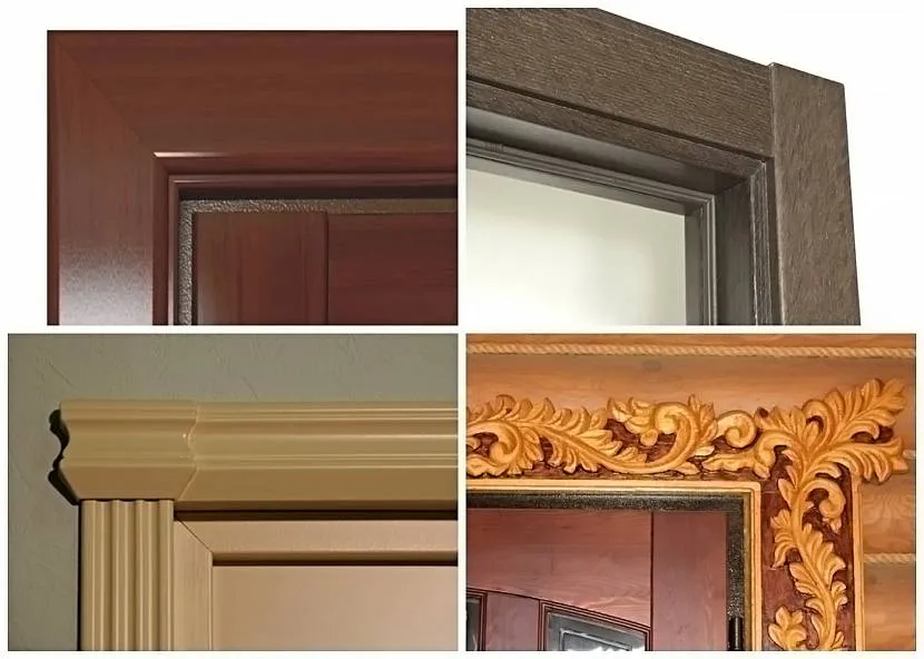 Форма лицевой стороны может быть плоской с прямыми или скруглёнными углами, округлой с центральным или смещённым радиусом, а также фигурной – с резьбой, фрезеровкой или другой рельефной нарезкой. Личные вкусы и предпочтения, касающиеся внешнего вида дверей, у всех разные, но все же лучше подбирать форму наличника в соответствии с их отделкой. Например, к простым гладким дверям или полотнам с простыми филёнками больше подойдёт плоское или округлое обрамление. А к резным деревянным – фигурное.
