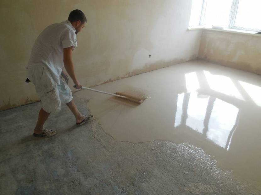 Уложив раствор на пыльное основание, не проведя его грунтовку, вскоре можно увидеть появление трещин, которые могут привести к отслоению материала. Поэтому пол, на который будет наноситься финишный слой, следует очистить от мусора, пыли и любых загрязнений.
