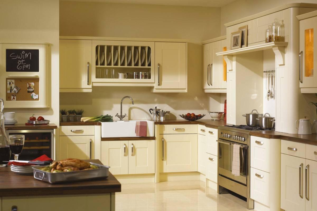 Для маленьких кухонь лучше использовать светлые оттенки. Они визуально увеличивают кухню, тогда как тёмные уменьшают площадь. Чтобы фасады и пол не сливались в единое пятно, желательно сделать акцент на цоколях.