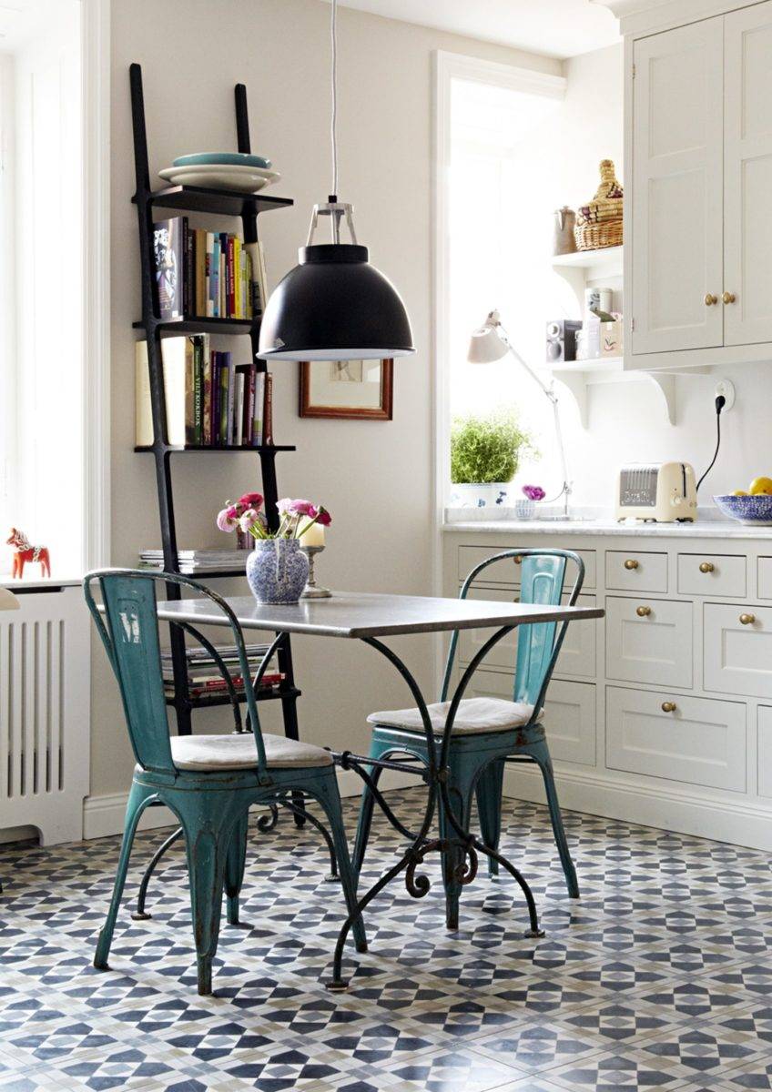 В самом начале мы вывели 9 базовых критериев, которым должны соответствовать отделочные материалы для пола на кухне. Анализируя вышеперечисленные плюсы и минусы различных товаров, мы определили, что лучшее покрытие для пола на кухне – это линолеум/мармолеум и керамогранит. Как видно на фото ниже, оба этих материала прекрасно вписываются в кухонную обстановку и обладают нужным набором достоинств.