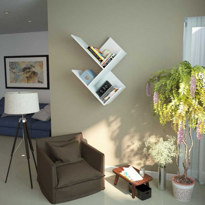 Если есть желание заполнить угол гостиной, но не хочется дырявить стены, можно оставить напольную модель в виде небольшого стеллажа