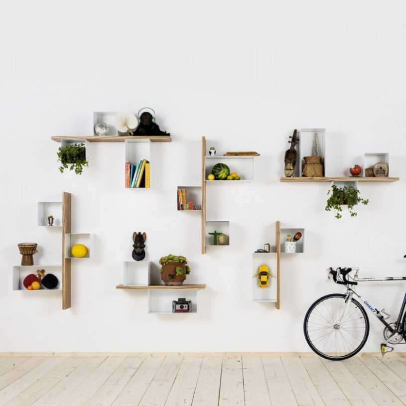 Интересного вида полки, обладающие нестандартными формами, уже давно завоевали популярность. Домовладелец может собрать собственный оригинальный вариант.