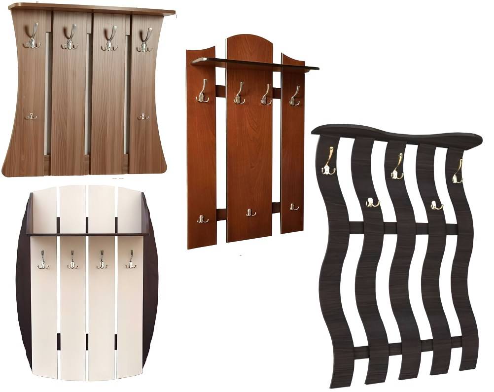 Деревянные вешалки (ДСП, цельное дерево и так далее) отличаются: