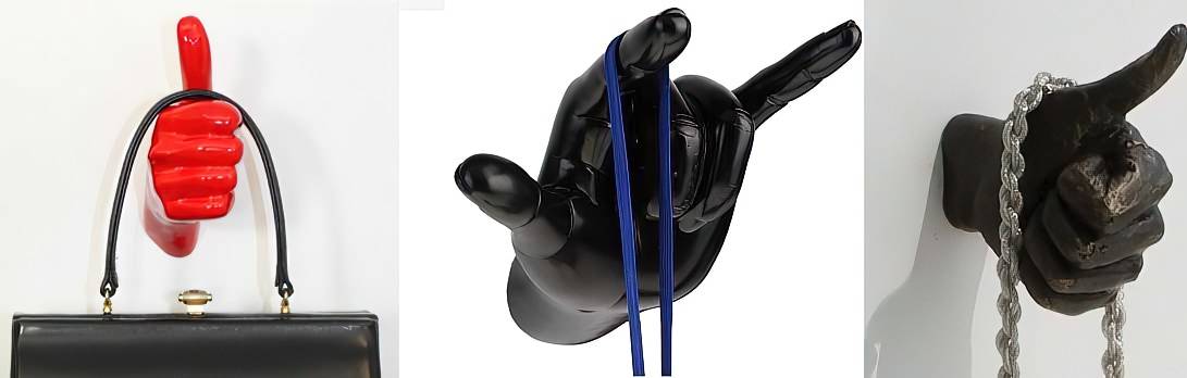 Настенная вешалка в прихожую имеет некую индивидуальность. Любая из них различается по форме и цвету. Авторы предлагают покупателям самые разные виды — звёзды из металла, кисти, чаши, ручки куклы и многое другое.