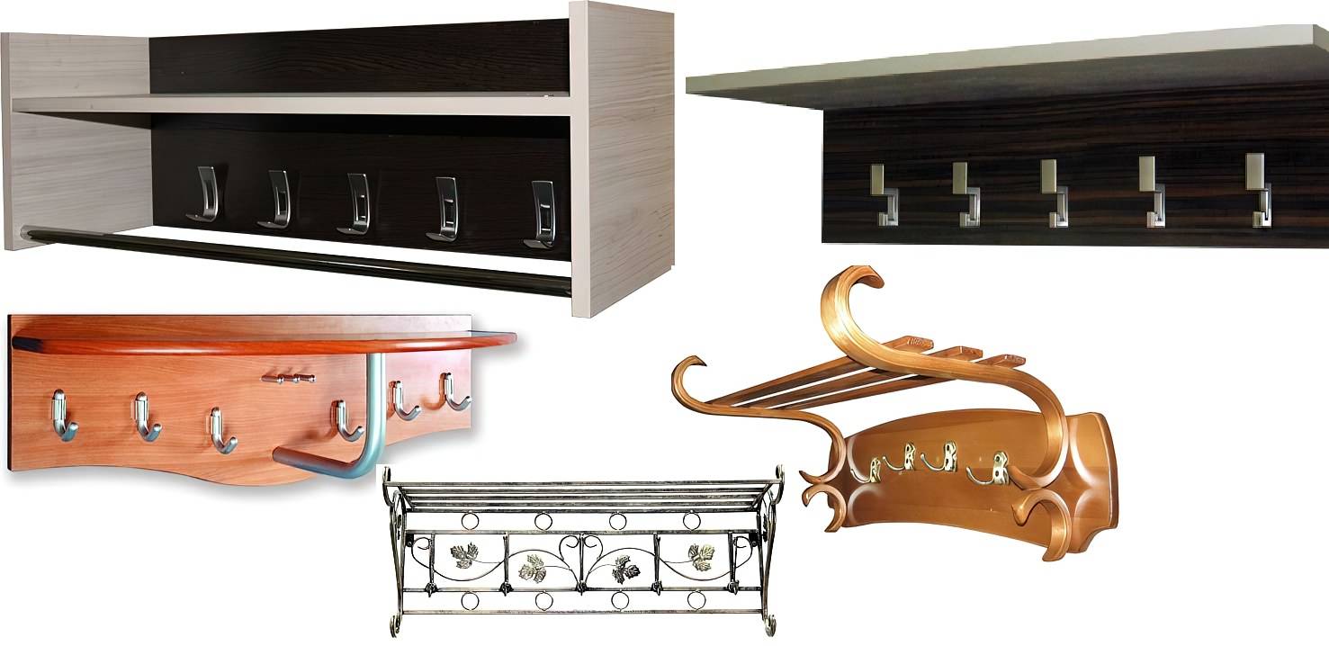 полками для хранения перчаток, вязаных шапочек, шарфов, сумок и так далее. Такие предметы интерьера отличаются большими габаритными размерами и вместимостью и могут быть изготовлены из дерева или металла;