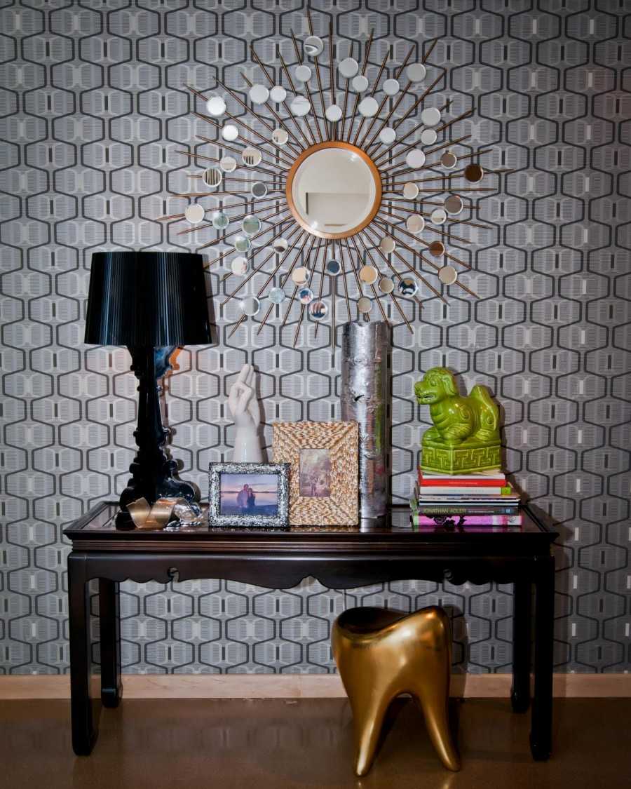 Рядом с туалетным столиком и зеркалом, даже если они расположены у окна, необходимо организовать дополнительное освещение. Естественного дневного света может не хватать, а ночью его не бывает вовсе. Так что настольная лампа в этом месте станет настоящей подружкой для девушек и женщин, занимающихся уходовыми процедурами перед сном.