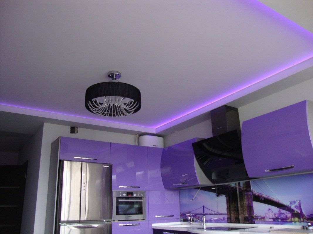 Есть такие варианты освещения на кухне с натяжными потолками: